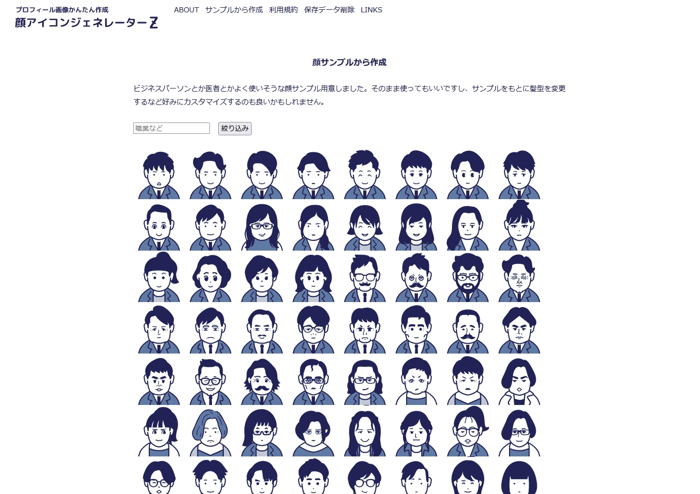 パーツが豊富で膨大な数の組み合わせで作れる顔アイコンジェネレーター。